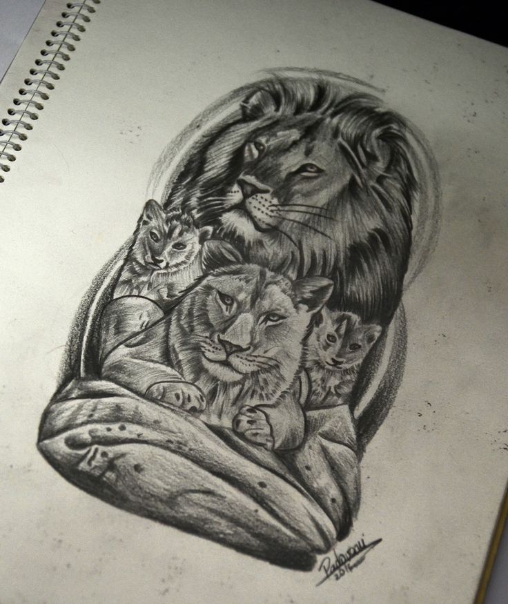 У нас есть король джунглей, львица и детеныш и в списке. Соедините их в одно произведение искусства, и вы получите татуировку, говорящую о семейной любви. Это сложная татуировка, которая проверит мастерство вашего тату-мастера.