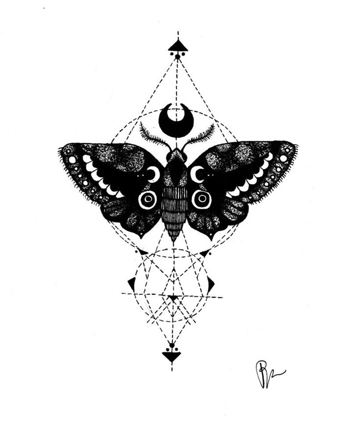 С древних времен мотыльки считались мистическими насекомыми, хранящими множество тайн. Считается, что мотыльки могут существовать как в мире живых, так и в мире мертвых. Поэтому татуировка с этим насекомым очень символична и может передача владельцу таких качеств как :