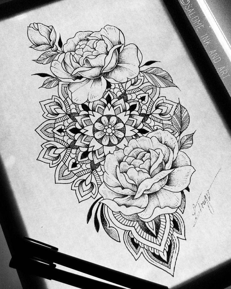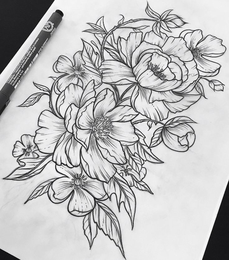 Эскиз может говорить о страстной или романтичной натуре в зависимости от цвета, размера и самого вида цветка.