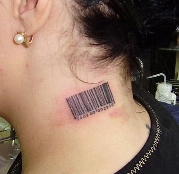 Тату штрих-код на шее