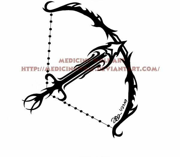 Эскиз со стрельцом также может означать готовность бороться за место под солнцем, внутреннюю силу человека. Лук и стрелы указывают на то, что человек может за себя постоять, но при этом не станет рваться в бой понапрасну или первым вызывать кого-то к сражению.