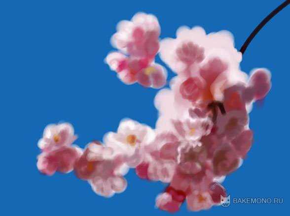 Помните, что сакура в цветении рисуется от белого до темно розового цвета.