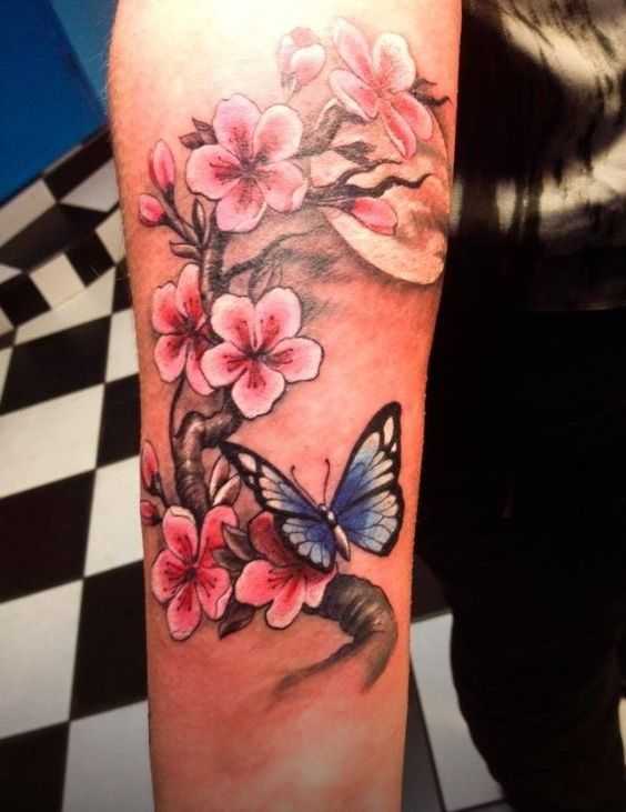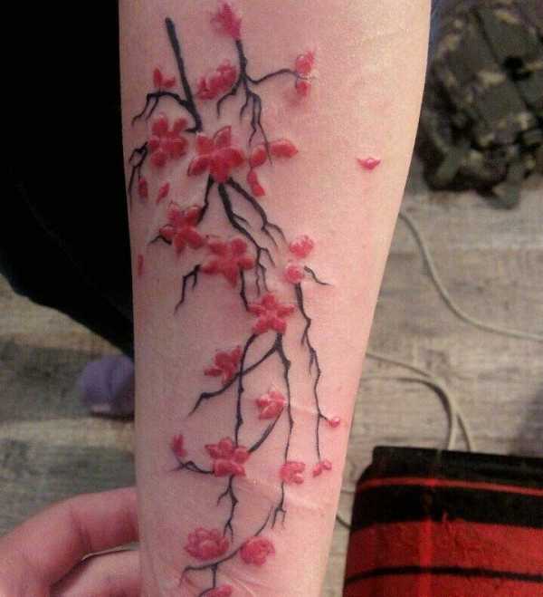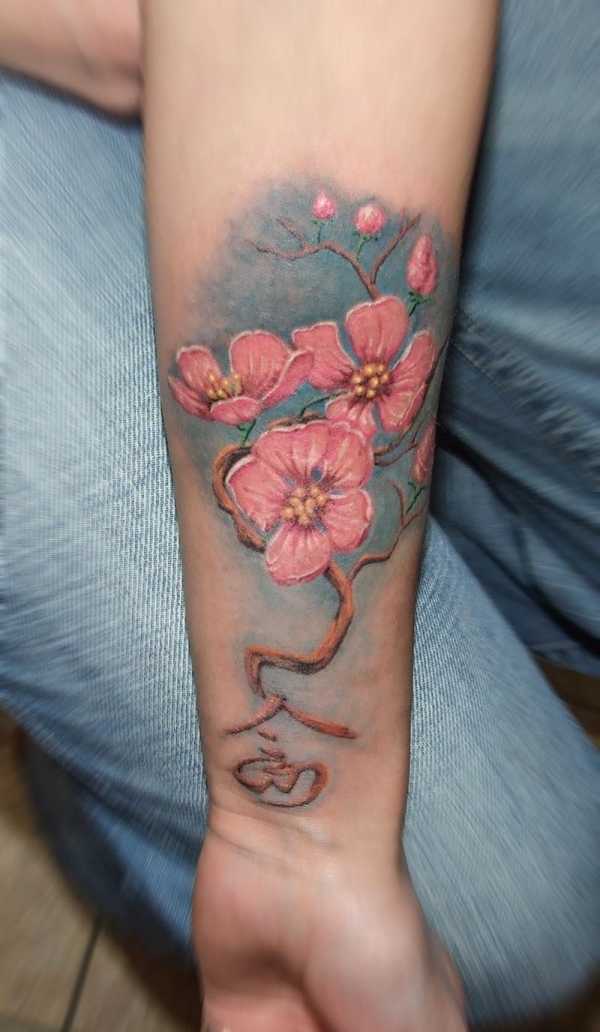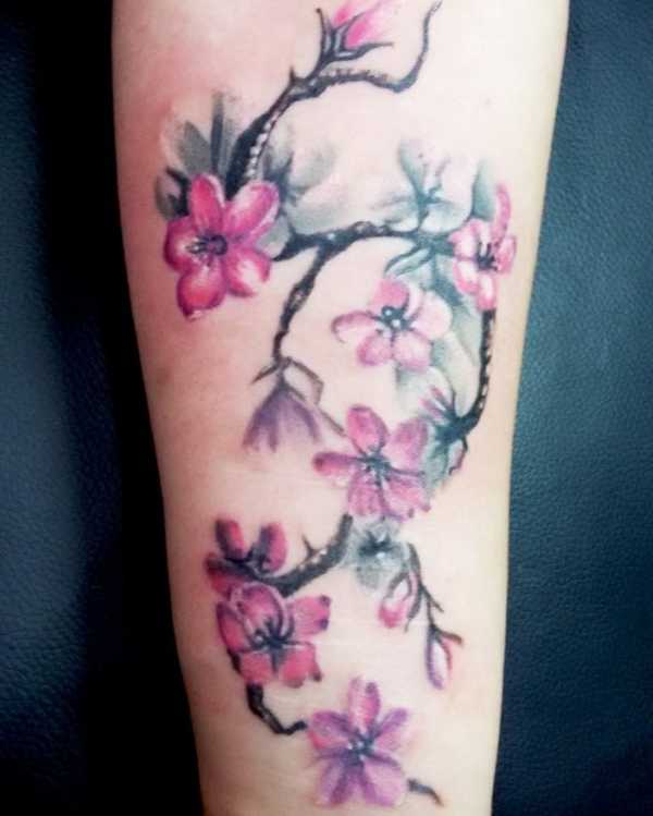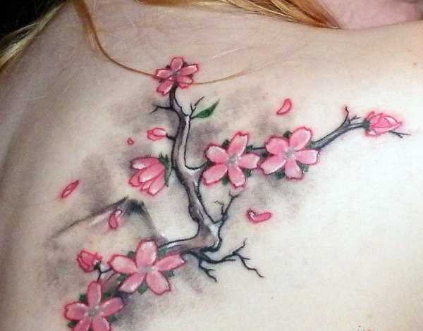 Исходя из того, что цвет с дерева быстро опадает, а дерево продолжает расти, тату с изображением японской вишни несет в себе обозначение борьбы, бесстрашия и храбрости.