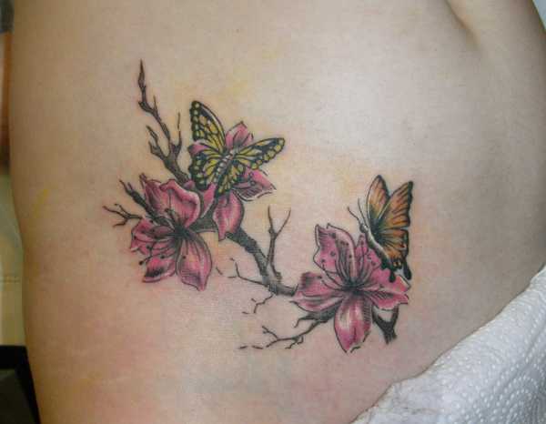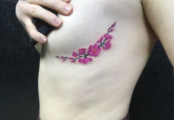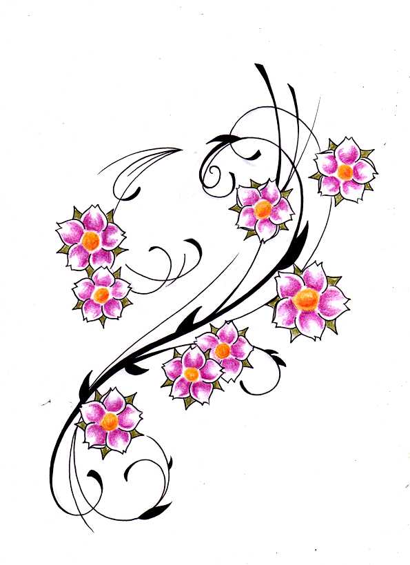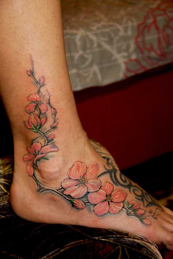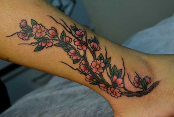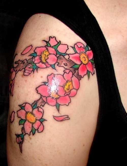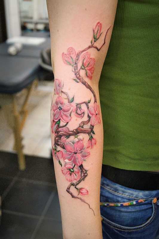 В сфере художественной татуировки очень большой популярностью пользуется цветочная тематика эскизов. Особым спросом пользуются эскизы с изображением сакуры. Это могут быть изображения самих цветов, рисунок цветущего дерева, или, как чаще всего бывает, цветущей ветки.