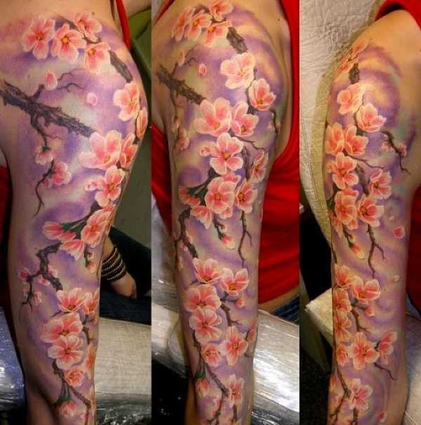 Сакура – татуировка, которая подойдет и мужчинам, и женщинам. Парни могут почувствовать себя настоящими японскими императорами, набив на своей спине столь изысканную татуировку. Девушки же придадут своему имиджу немного духовности и гармонии, изобразив на своем теле великолепные цветы сакуры. Женские тату с японской вишней можно набивать не только на спине, но также на бёдрах, на пояснице и на руках.