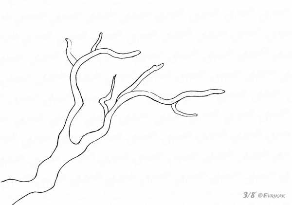 Нарисуйте линии так, чтобы они плавно переходили из пенька в ветки. Увеличьте толщину веток, а так же не забывайте рисовать их неровными, извилистыми и пересекающими друг друга.