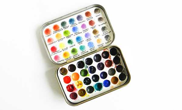 Какой бы набор вы не выбрали, первое, что вы должны сделать, после того, как купили и принесли его домой, это создать цветовую палитру. Возьмите листок акварельной бумаги и вырежьте по форме вашего набора, чтобы палитру можно было хранить в этой же коробочке. Это очень удобно: палитра всегда под рукой, а цвета можно расположить также, как в коробке для наглядности. Вдохновитесь на создание собственной цветовой палитры погуглив различные примеры.