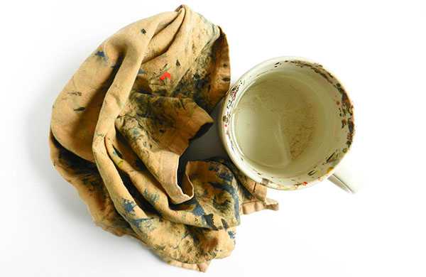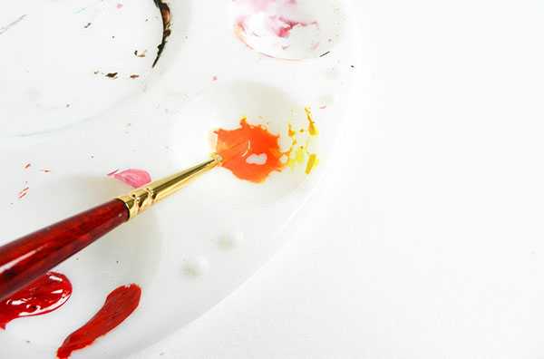 Промойте кисть чистой водой, вытрите ее и подберите все остатки краски.