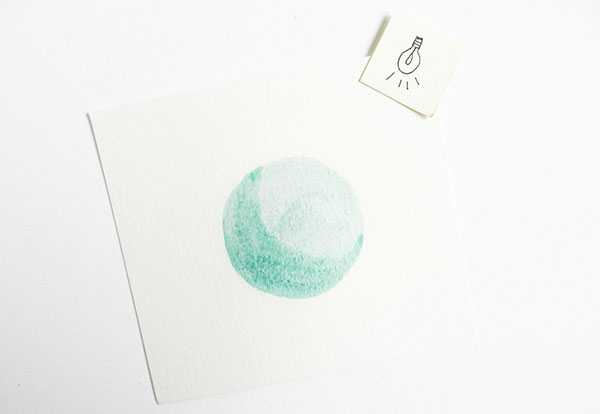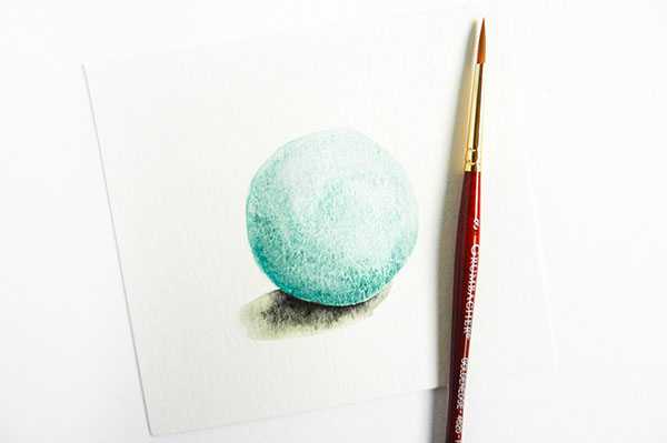 Причина того, что мы изучили прозрачность — это смешивание и наложение цветов. С помощью различных оттенков одного цвета вы можете сделать любой образ реальным. Я собираюсь показать вам, как превратить круг в шар с помощью смешивания и прозрачности акварели: