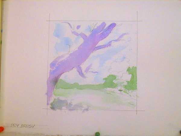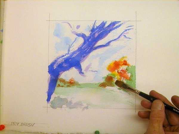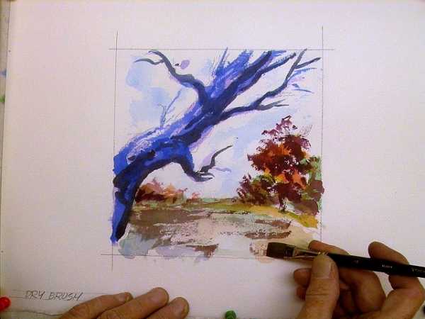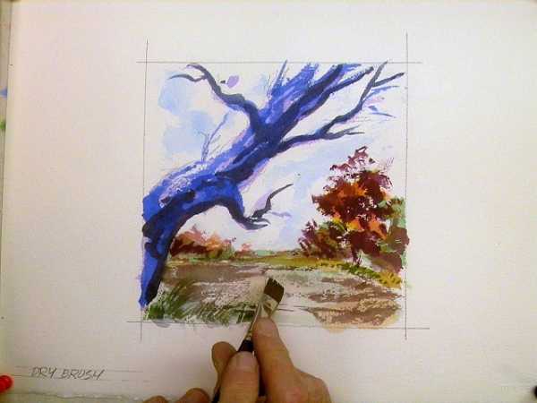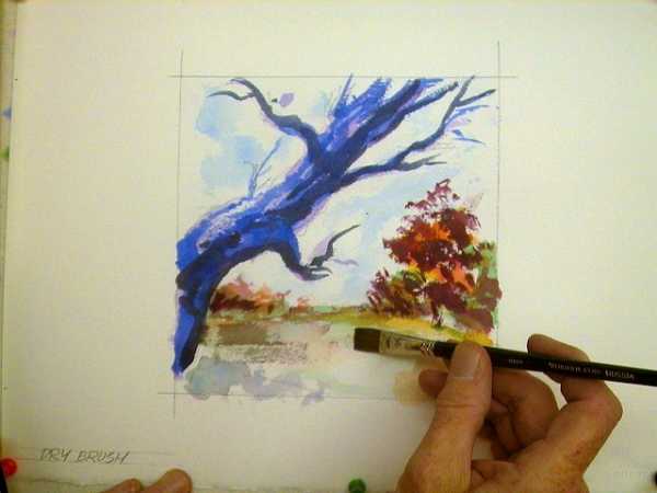 Вы можете использовать сухую кисть, чтобы создать рисунок в данной технике. Для этого хорошенько промойте и выжмите кисть. С ее помощью вы сможете создать четкие линии.