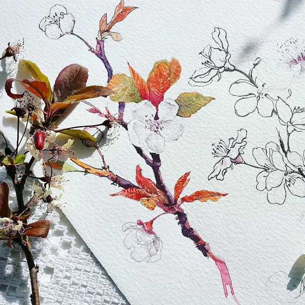 В живописи очень большое значение имеет ваш настрой и мысли. Во время рисования воображайте характер того, что вы пишете. Например, чтобы листочки получились натуральными, старайтесь делать их разными. Представьте, что один лист подсыхает и потемнел, другой молоденький и зеленый.