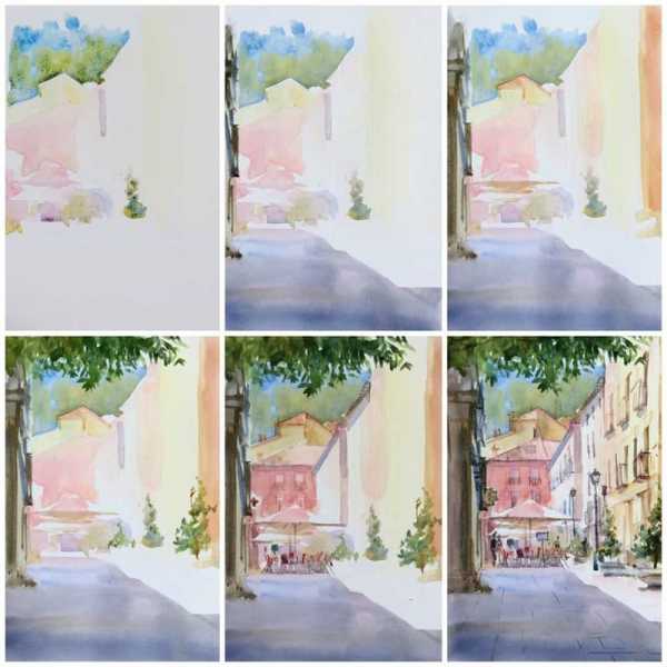 Самое замечательное в живописи акварелью — это то, что вы имеете полный контроль над прозрачностью краски. Понаблюдайте, как один цвет может меняться в зависимости от соотношения воды и краски на кисти!