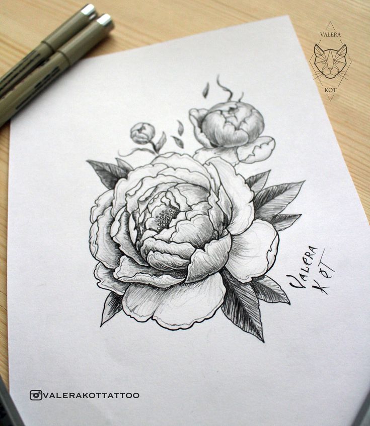 100 ЛУЧШИХ эскизов тату Пион для девушек: фото, значение