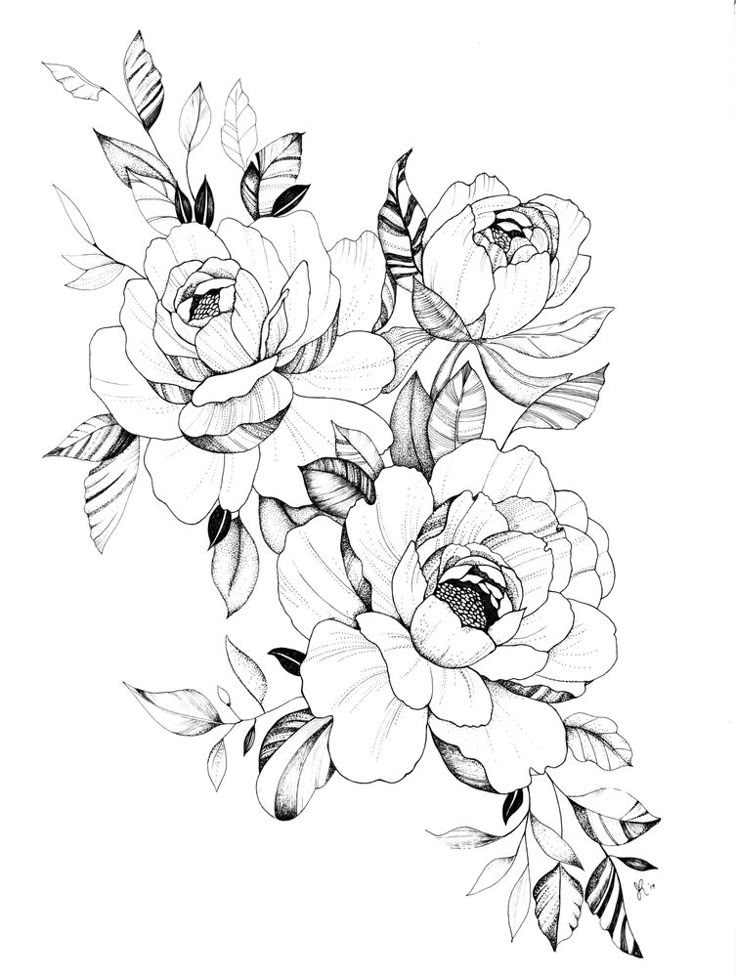 Татуировки с розами и пионами олицетворяют очаровательную и усиливают женскую красоту. , и знакомство с твоей вечной женственностью. Это популярный выбор среди женских татуировок.