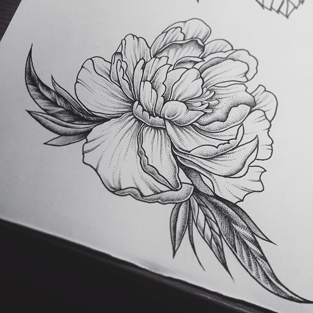 18. Графическая татуировка пиона Графическая татуировка пиона может быть выполнена в любой форме и изображать инновационные техники татуировки.