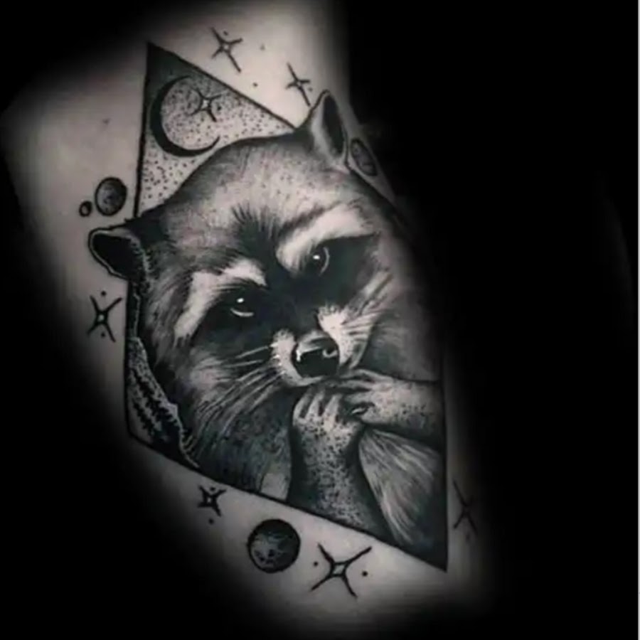 Совсем недавно люди хотели волков, драконов и прочую реальную и мифологическую фауну, а сейчас всё популярность в мире набирает тату енот.Популяризация этого милого и забавного зверька способствует не только интернету.
