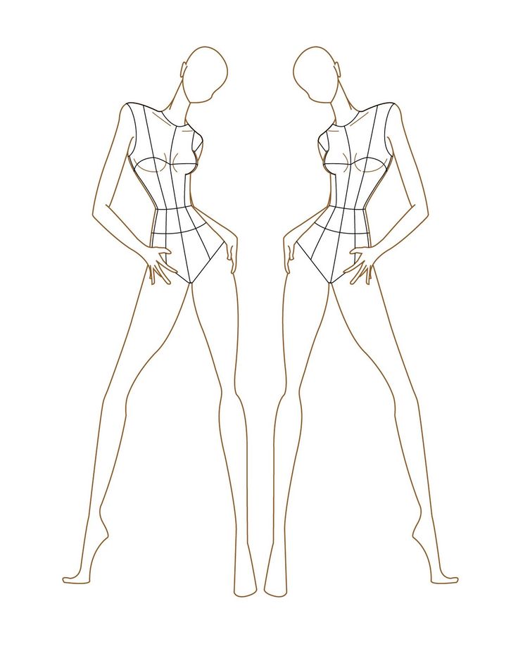 Теперь необходимо продумать, как сделать тот самый цепляющий предварительный технический рисунок – в академическом или в фэшн-стиле? Первый способ, безусловно, отображает на бумаге все пропорции тела, но одежда будет смотреться, прямо скажем, – скучновато.