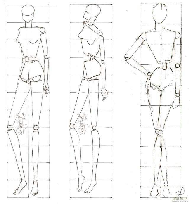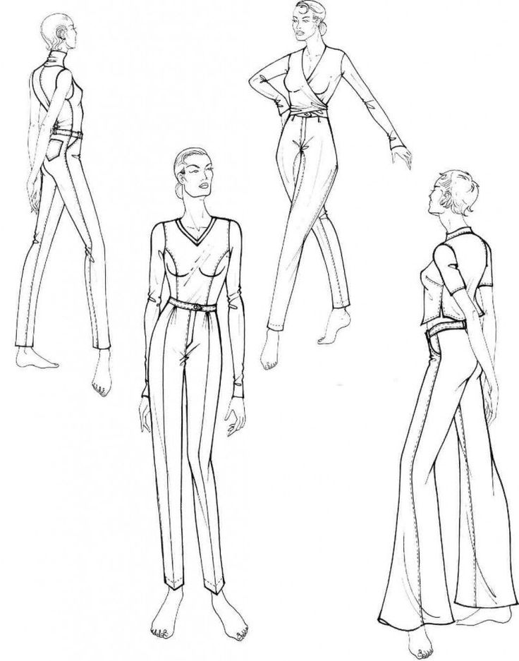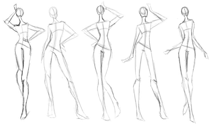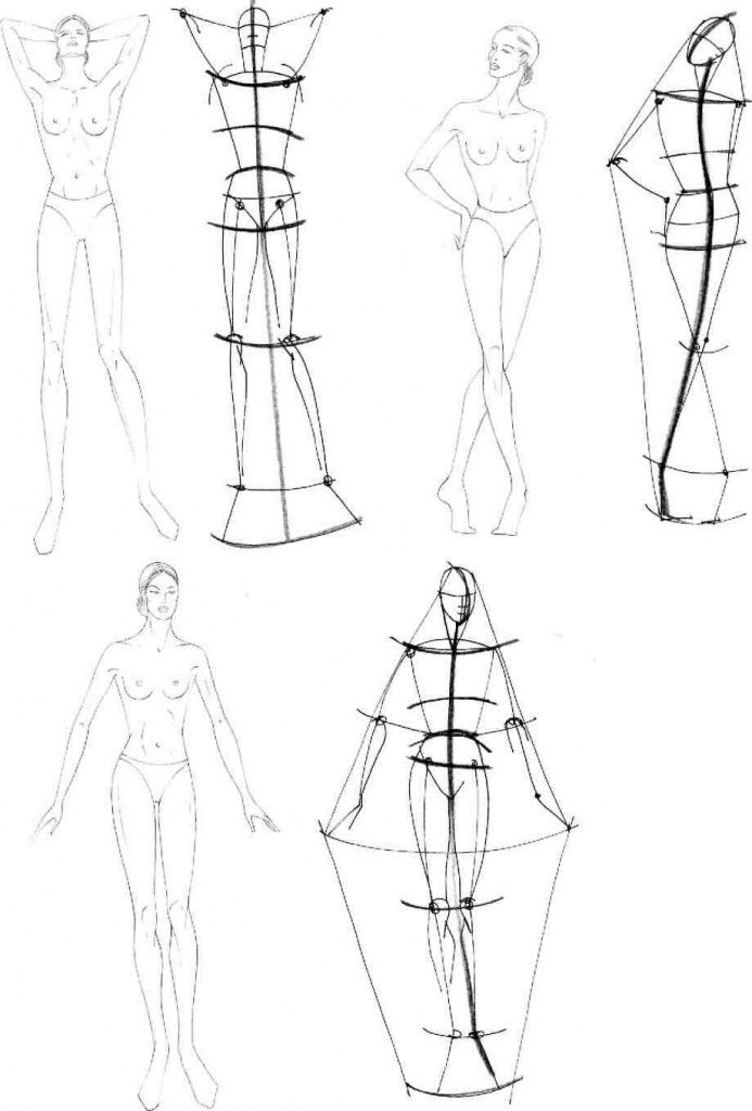 Итак, чтобы нарисовать эскиз одежды, следует предварительно правильно изобразить фигуру, на которую эта одежда будет надета. Основная трудность – передача изгибов рук, ног и бёдер, поворотов головы. Для этого необходимо хотя бы немного узнать об анатомическом строении человека, опорной ноге и балансе тела, представлять себе, куда упадёт тень.