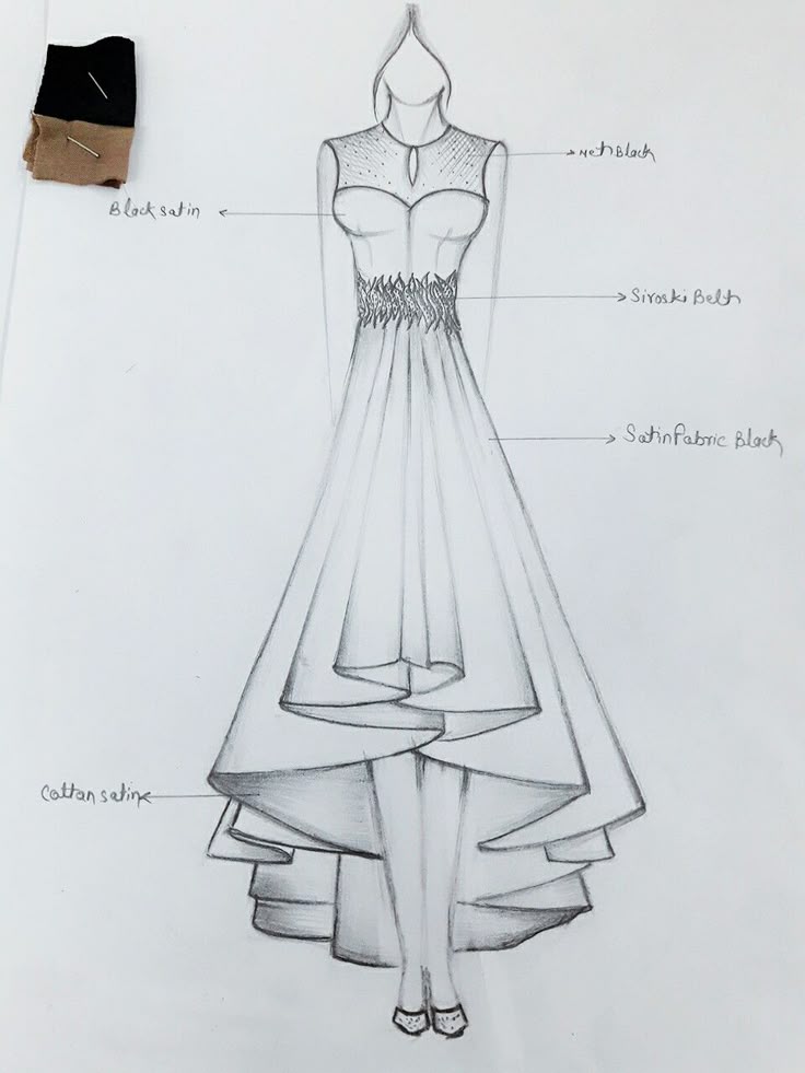 Набросок даёт представление о том, как будет выглядеть наряд в конечном итоге.