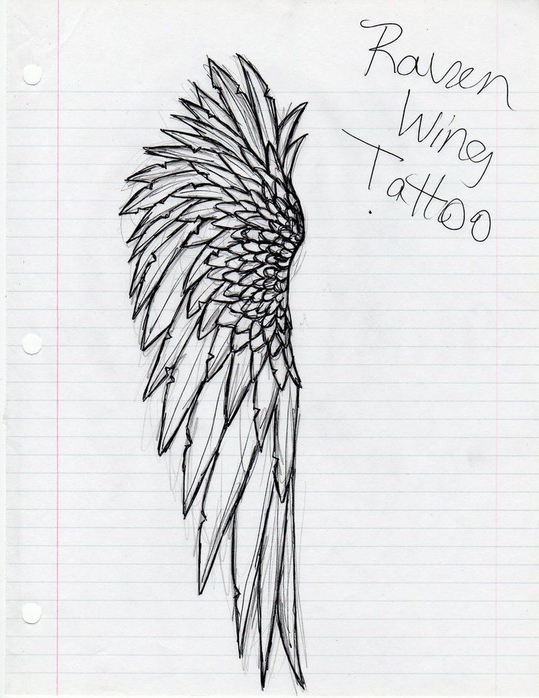Эскиз татуировки на спине, на голени \u2014 крыло с черными перьями …