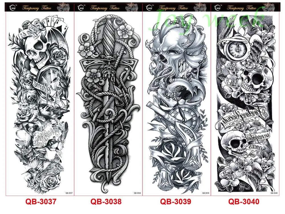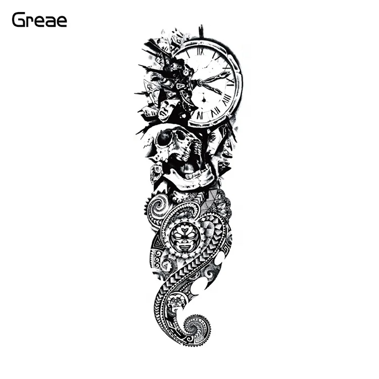 Временная татуировка рукав рука смерти череп часы крест черный водонепроницаемый Мужские Женские