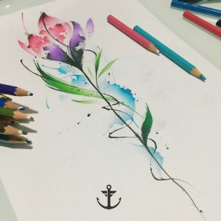 Акварельные татуировки и их эскизы — это цветные рисунки, которые вместо четких краев и линий имеют мягкие плавные переходы цвета. Изображения имитируют легкие прикосновения кисточки с краской к влажному полотну. Чем более мягким и размытым получается конечный рисунок, тем более умелым считается его автор.
