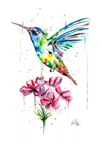 Тату акварель для девушек будет особенно ярким и изящным украшением. Они стали пользоваться популярностью наряду с татуировками в стиле геометрия. Хорошим спросом пользуются такие эскизы как:- Парящая колибри;