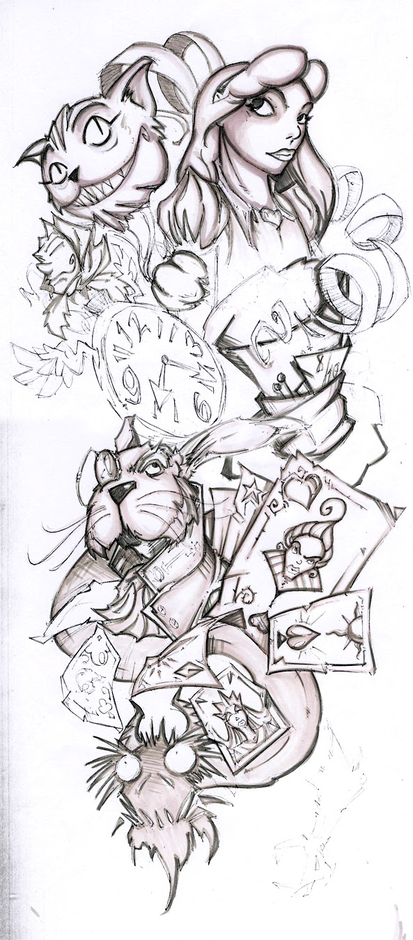 персонажи из алисы в стране чудес – ТАТУ РУКАВА ЭСКИЗ – tatufoto.com