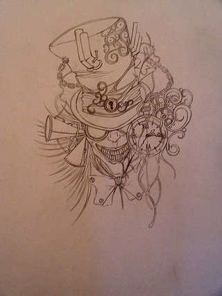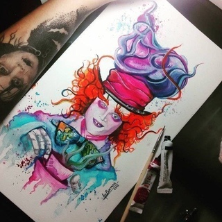 Фото татуировки Алиса в стране чудес в стиле абстракционизм .