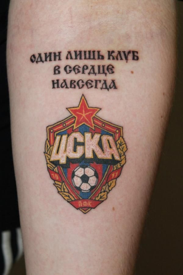 Для ценителей тату футбол одно из ярких увлечений. Если на появилась надпись ЦСКА, значит болельщик вошел в ряды официального клуба.