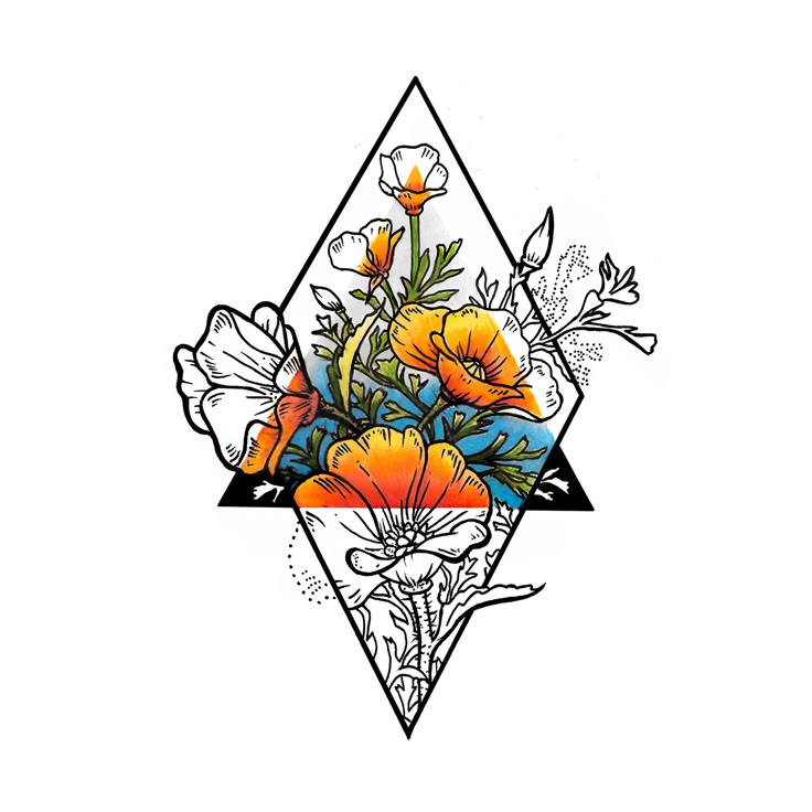 blume – геометрическая цветочная татуировка. handgezeichnet Минималистский стиль Цвет.