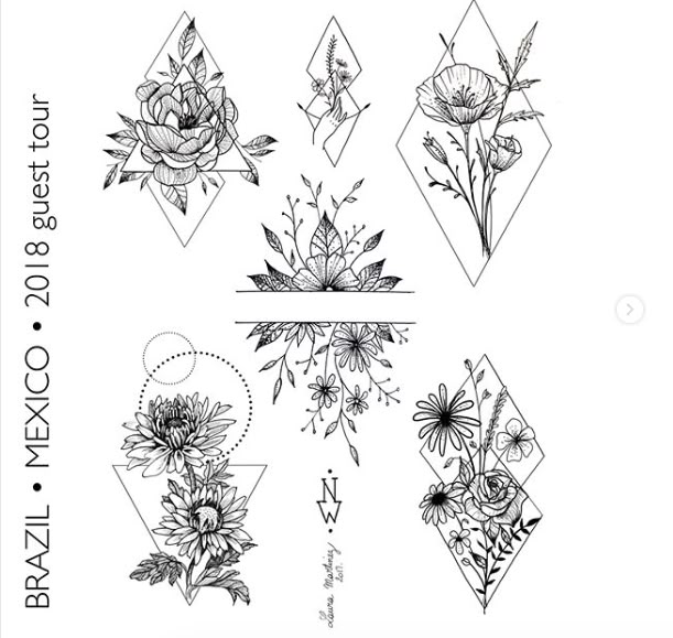 sammlung von handgezeichneten design, vorlagen – геометрическая цветочная татуировка, графика, -clipart, -cartoons und -symbolesammlung von handgezeichneten Designs, Vorlagen