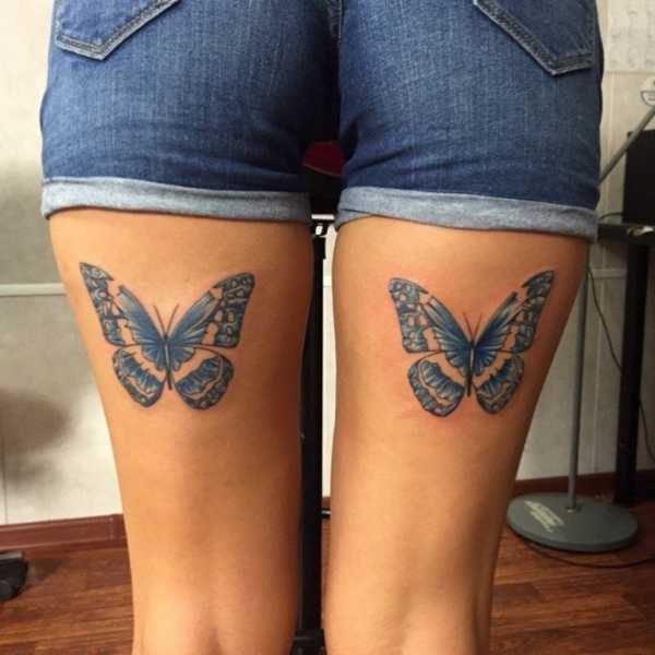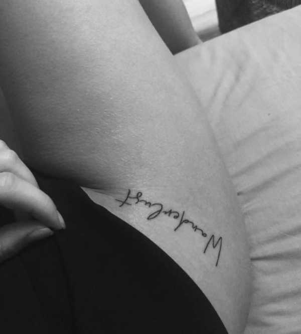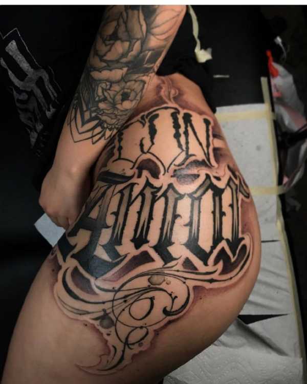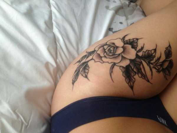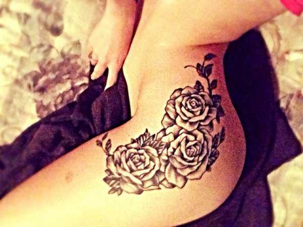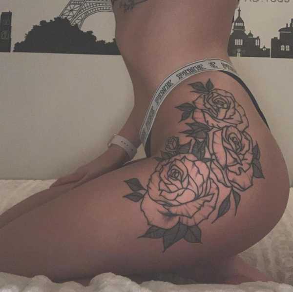 Чаще всего, на бедрах сзади девчонки наносят надписи на различных языках, узоры, банты и мандалы. Подходящими стилями для этой области являются минимализм, нью скул, реализм.
