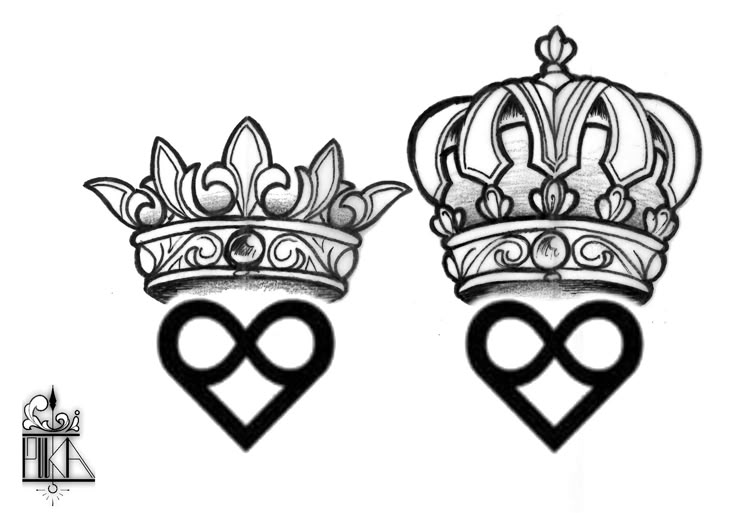 Универсальные парные тату надписи подходят абсолютно всем. Пример удачного решения для пары является смысловая композиция с переводом на английский «Queen/King» и парные татуировки короны. Семейным парам подойдут «Mother/Father» и пазлы.