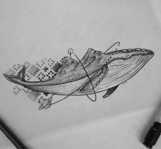 Татуировка кита в сочетании с космосом. Интересное сочетание, которое редко оставит вас равнодушным.