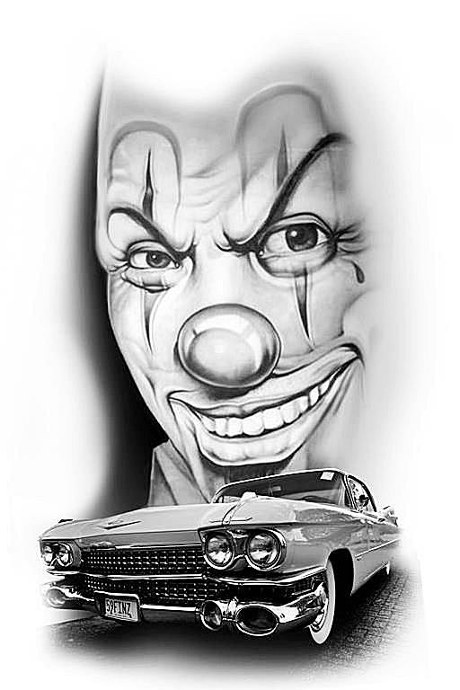 Фрагменты машины могут появляться на татуировках крупного масштаба вместе с женскими портретами или пейзажами.