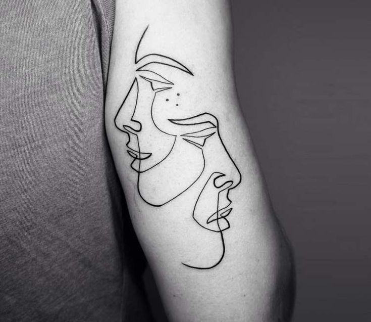 - тату одной линией – визуально эскиз содержит непрерывный, чаще разомкнутый, абрис;