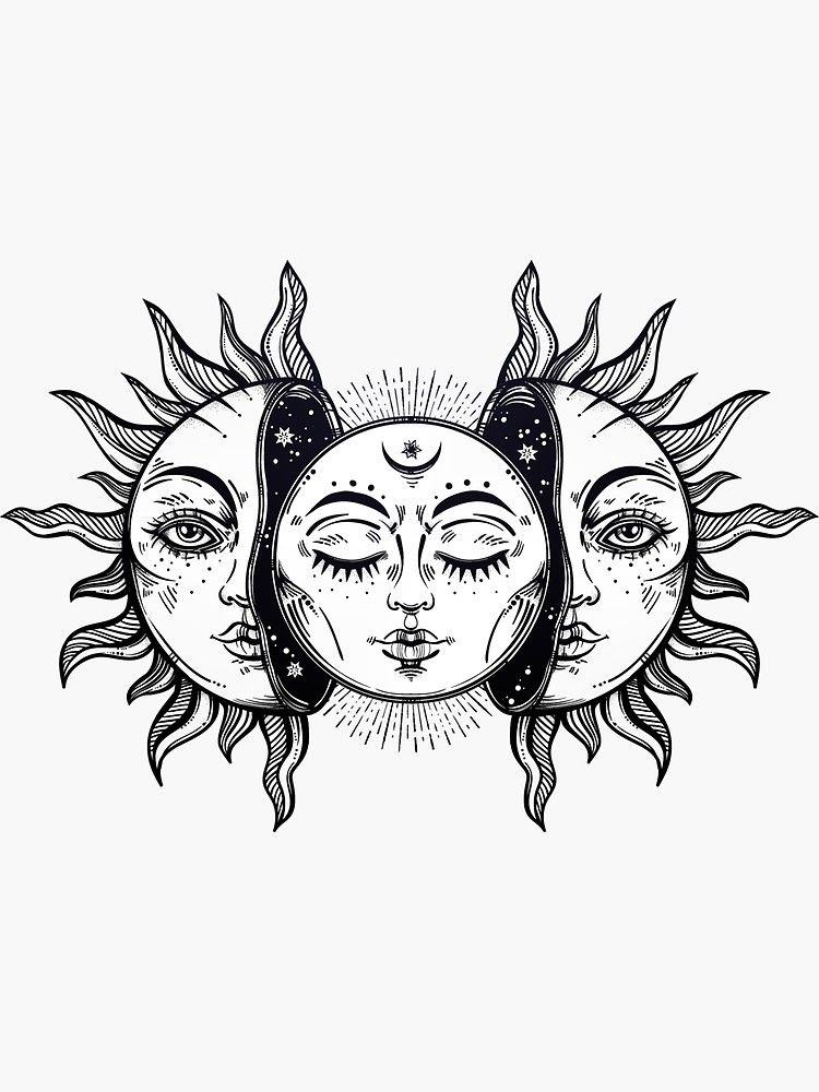 Татуировка солнца и луны часто воспринимается как мужчина и женщина, каждый из которых поддерживает друг друга.