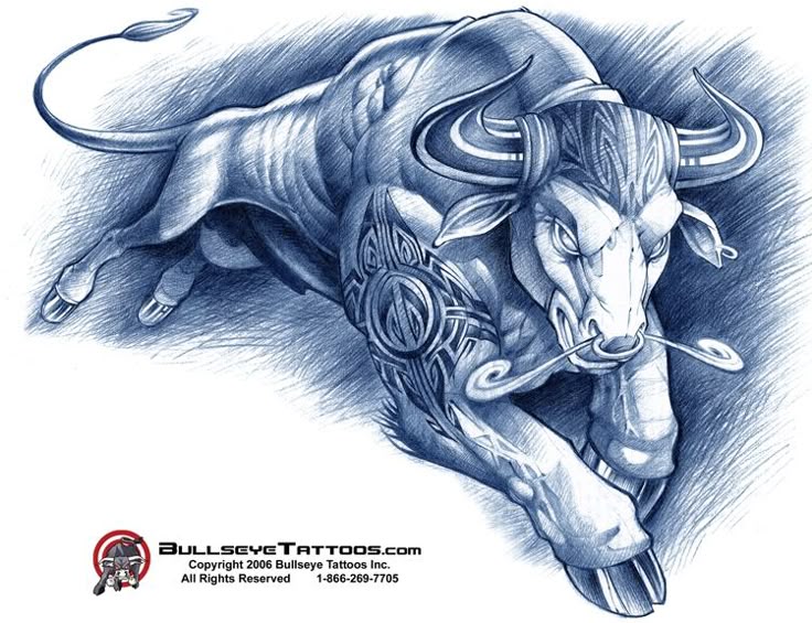 Реалистичное изображение быка – энергия, сила, непростой характер. Разъяренный бык, готовый к нападению, говорит о способности постоять за себя и своих близких, о природной агрессивности и отсутствии страха перед сильным противником.