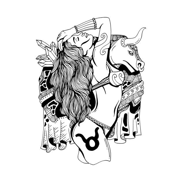 Красиво нарисованная девушка-Телец, вдохновленная традиционной иллюстрацией.