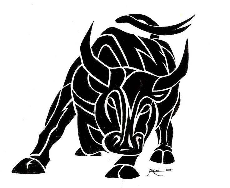 Другой взгляд на классический символ Тельца. Красиво гладкие мазки кисти делают его таким реальным.