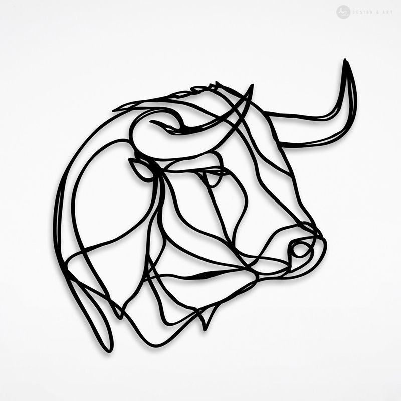 Из абстрактных завитых полос могут получиться очень красивые тату, изображающие Тельца. Обычно такие эскизы не отличаются глубокой детализацией и представляют образ лишь в общих очертаниях. Такие татуировки чаще делают в одном цвете.