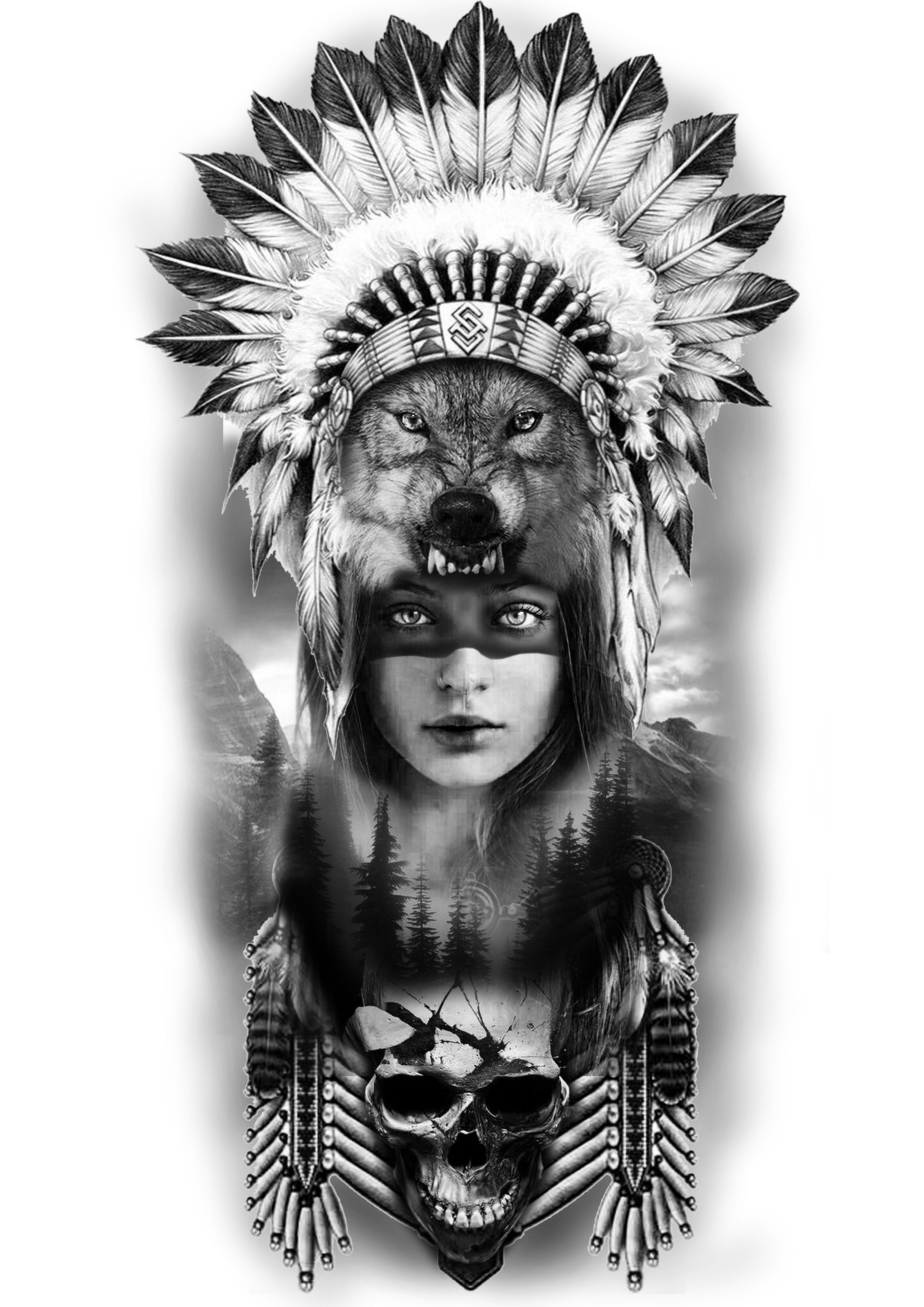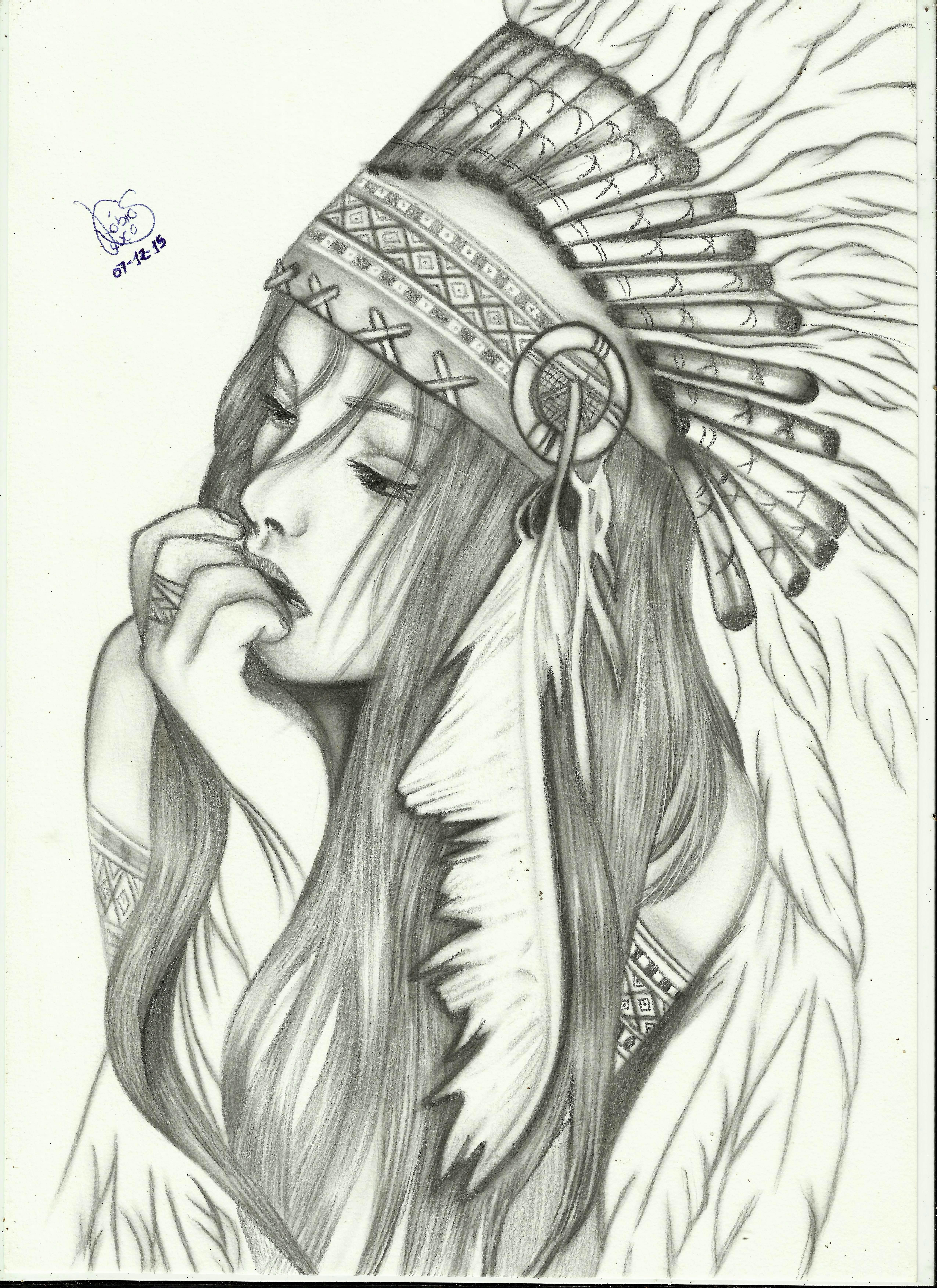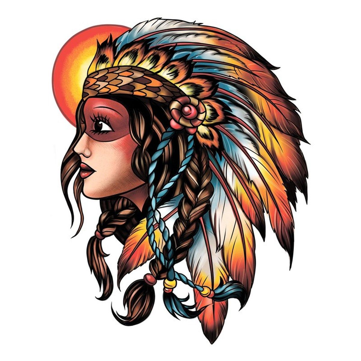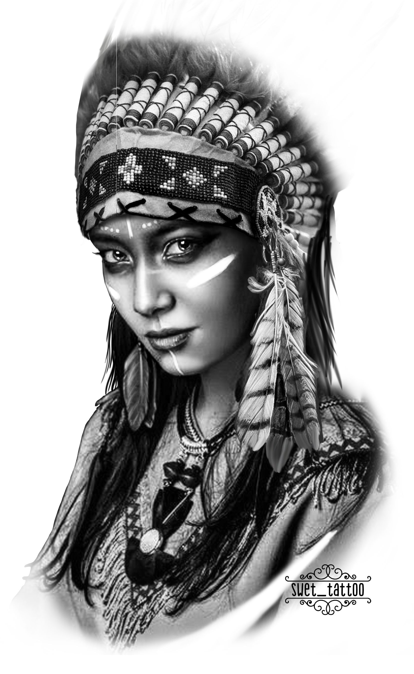 Девушка в индейском стиле тату