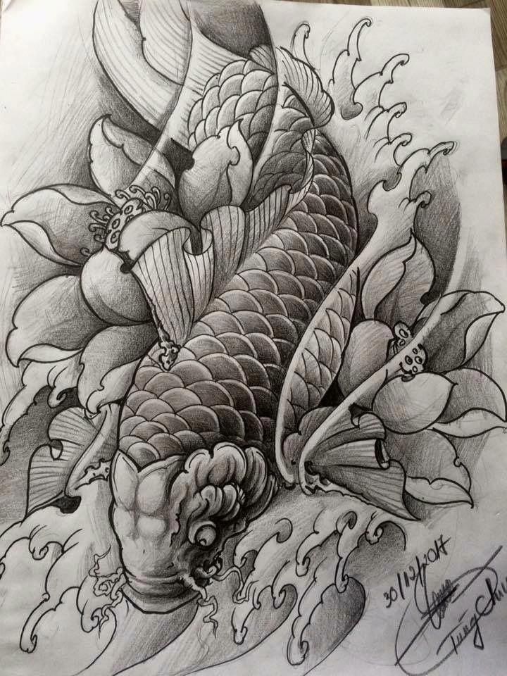 Рыбы кои известны как «японские влюбленные птицы» или «японские сказочные принцессы». Они красивы, грациозны и очень популярны среди японцев. Дизайн татуировки рыбы кои является отражением красоты самой рыбы.