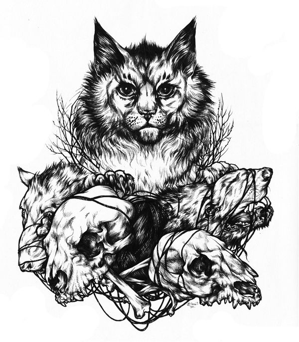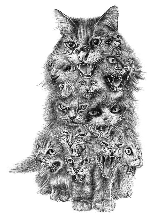 @hadrissm через Instagram Вы действительно хотите напугать людей своей татуировкой? Этот дизайн татуировки наверняка откроет челюсть или два и отпугнет людей, когда они увидят его впервые. Это готовый дизайн татуировки с тремя кошачьими головами. В то время как выражение лица кота делает его милым, три головы делают его действительно жутким и мрачным.