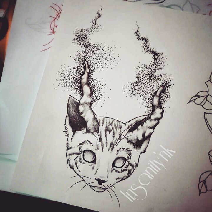 Тату четырехглазой черной кошки, чтобы удивить вас