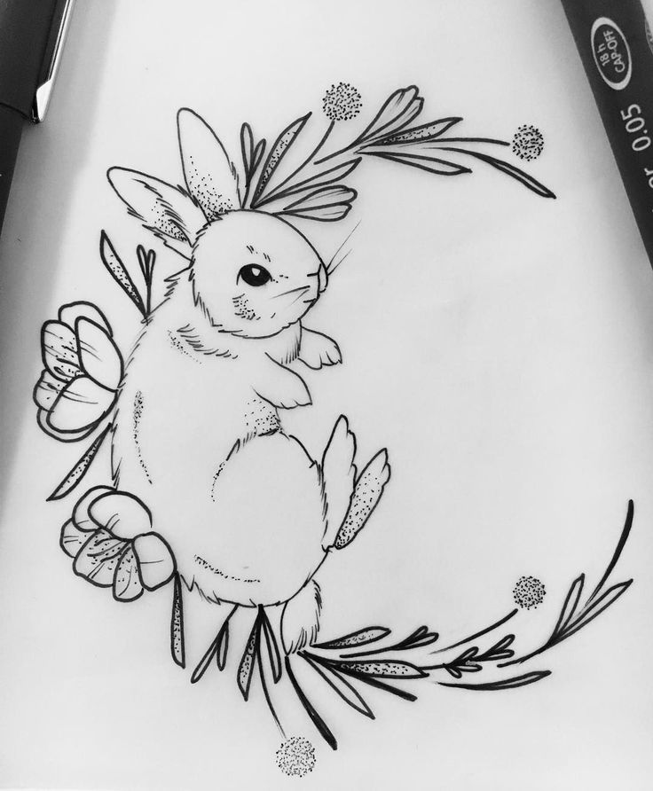 Робкое животное, которое бежит, останавливается и снова делает то же самое и пытается защитить себя от охоты, вот что делает милый кролик. Изображение, вытатуированное на спине, напоминает те же проходящие мимо цветы, а удивительное сочетание цветов делает его очень привлекательным и роскошным.