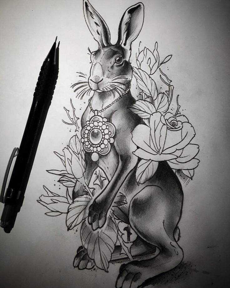 Татуировка с изображением кролика означает хитрость, скорость, плодородие, сексуальность, игривость, веселость, интуицию, мудрость, удачу, возрождение, молодость, любвеобильность, романтичность, мягкость, эмоциональность, харизматичность, доброту, нежность, робость, любовь к жизни, доброжелательность.