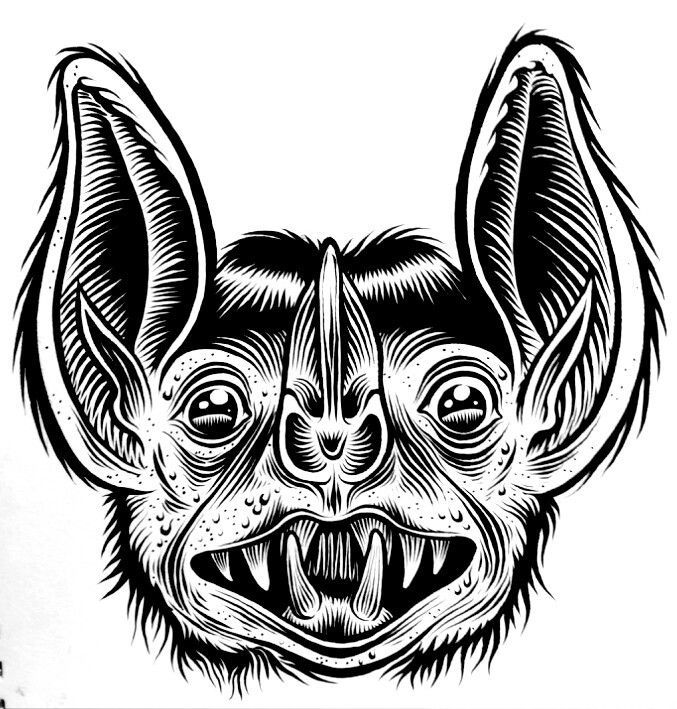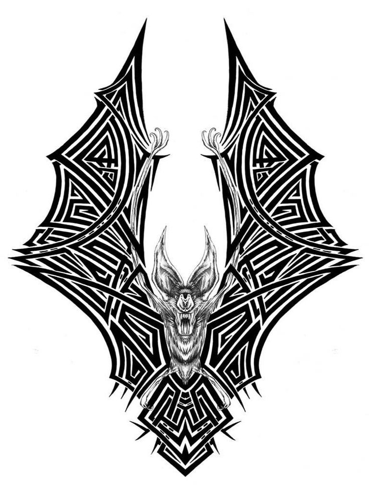 Поскольку летучие мыши являются частью как легенд о вампирах, так и легенд о супергероях Бэтмене, рисунки могут изображать любую из них. Иногда дизайн летучей мыши является важным дополнением к мрачной теме, которая показывает элементы зла, такие как падший ангел, черепа, мрачный жнец и другие элементы на одной линии.