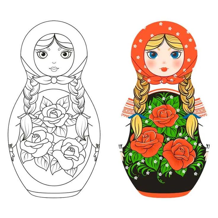 Матрёшка для срисовки – 85 фото